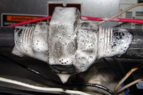 • Локринговые соединения. Места заводской пайки трубопровода охлаждающего контура чаще всего становятся местом утечки. Причиной может быть как естественный износ, так и изначально некачественное соединение.