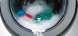 - Эффективная стирка. За счет вращения барабана в обратную сторону белье в таких агрегатах отстирывается лучше. Удаляются даже самые сложные пятна. Кроме того, процесс стирки проходит быстрее, чем в стандартной СМА. Время работы агрегата в этом случае значительно уменьшено.